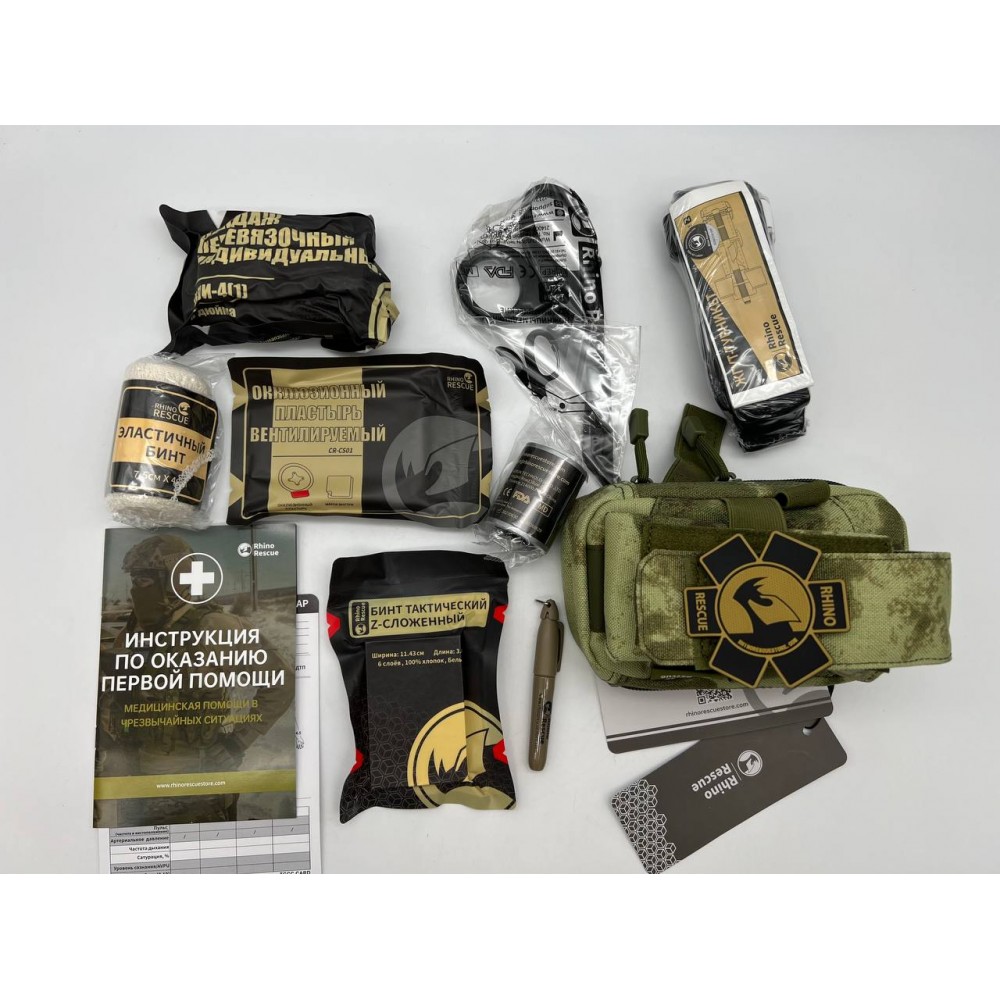 Готовая аптечка тактическая военная Rhino Rescue 11в1 укомплектованная Второй эшелон с молле широко используется специалистами по всему миру. Полный набор для оказания первой помощи при травмах.