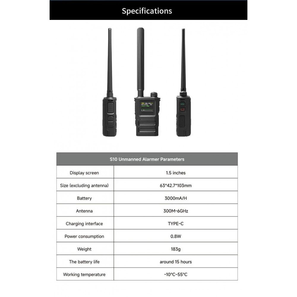 Размеры детектора с антенной составляют 63x43x103 мм, а вес — всего 183 г, что делает его чрезвычайно портативным и удобным для переноски. Таким образом, SKYDROID S-10 представляет собой идеальное решение для обеспечения безопасности и защиты от беспилотных летательных аппаратов в любых условиях.