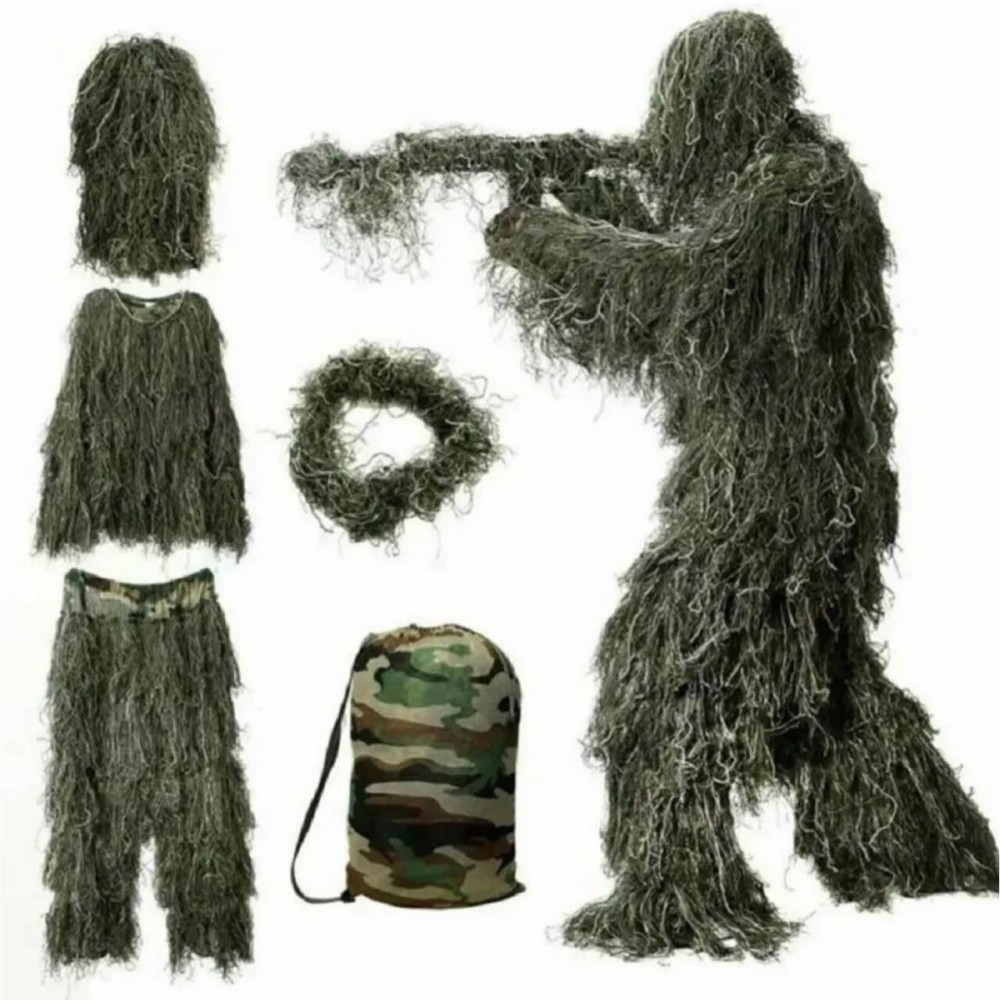 - Маскировочные свойства: Костюм имеет волокна, имитирующие растительность, что обеспечивает отличную маскировку в разнообразных ландшафтах. Он способен полностью скрыть снайпера или разведчика от наблюдения благодаря эффективной имитации окружающей природы.